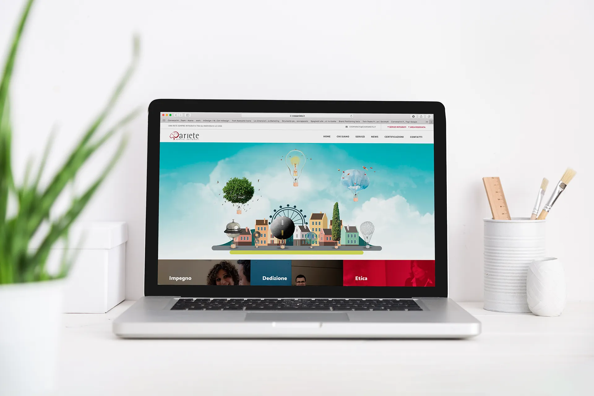 Abbiamo curato il restyling completo dell’identità visiva, declinandola su tutti i canali di contatto, dal sito web (per computer e dispositivi mobili) alla brochure istituzionale. La scelta di una grafica essenziale ma versatile ha permesso di comunicare chiarezza e professionalità. Il risultato è un ecosistema visivo coerente che non solo racconta i servizi offerti, ma trasmette i valori di un partner affidabile e proiettato verso il futuro.