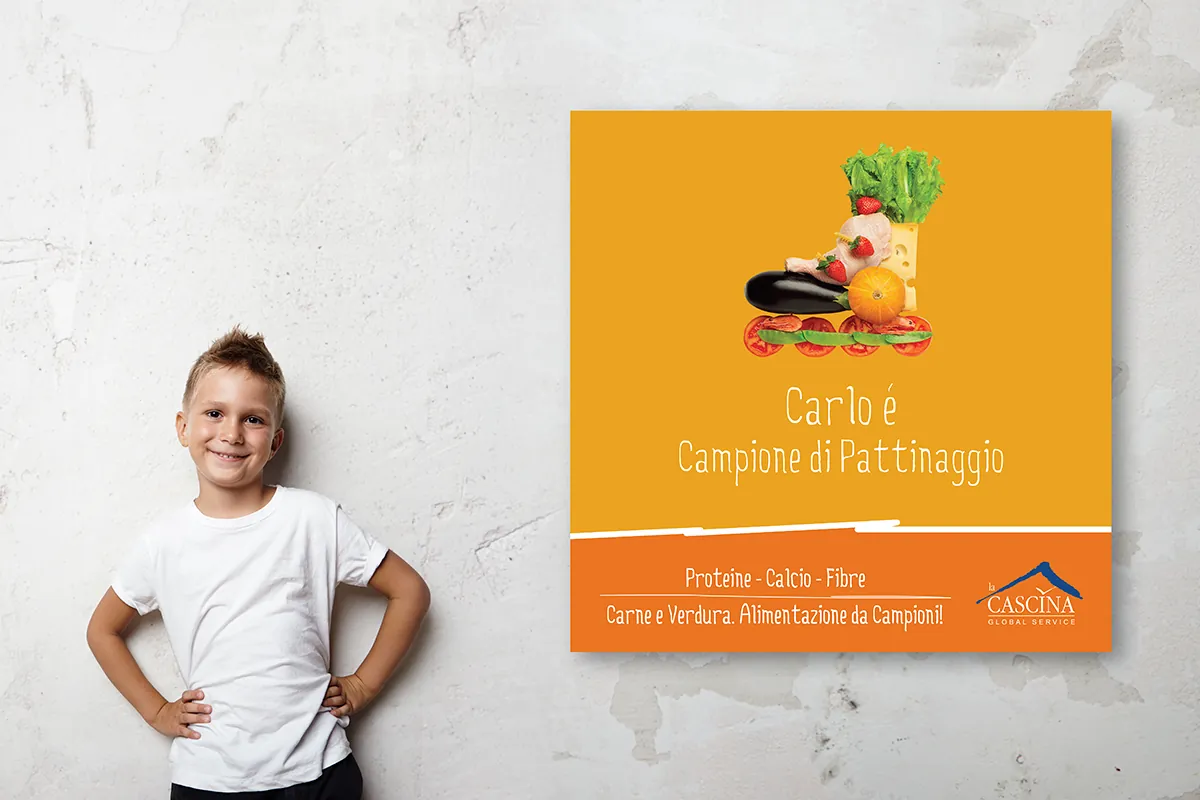 Nell’ambito della gestione della ristorazione scolastica per La Cascina (Vivenda Spa), è emersa la necessità di comunicare con i più giovani utilizzando un linguaggio a loro affine. Il progetto sfrutta la potenza metaforica dello sport per trasformare il momento del pasto in un’occasione di apprendimento non convenzionale, dove il cibo diventa il “carburante” per i propri sogni e passioni.